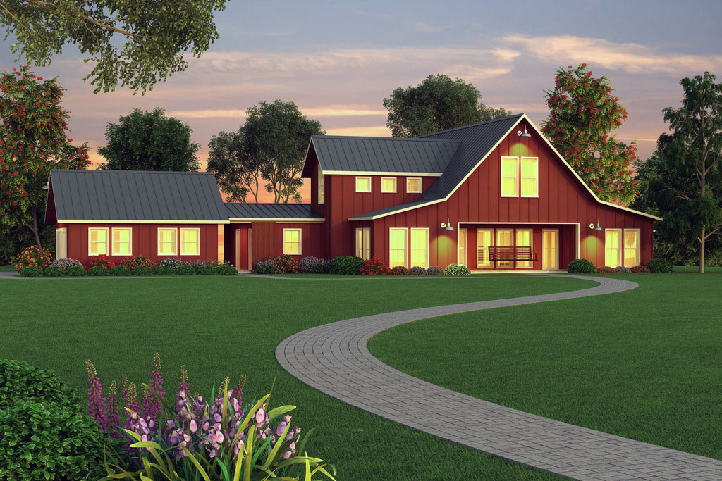 How do you put a modern spin on a classic farmhouse? Start with an open layout that incorporates outdoor living, add generous storage spaces, and finish with a flexible loft upstairs. Other up-to-date features include the easy-to-access master suite, where the huge shower offers a great view of the backyard. Smart placement makes the guest suite’s bathroom equally useful as a powder bath for general use. The design calls for barn doors that can cover the front window wall. See more images, information, and the floor plan.