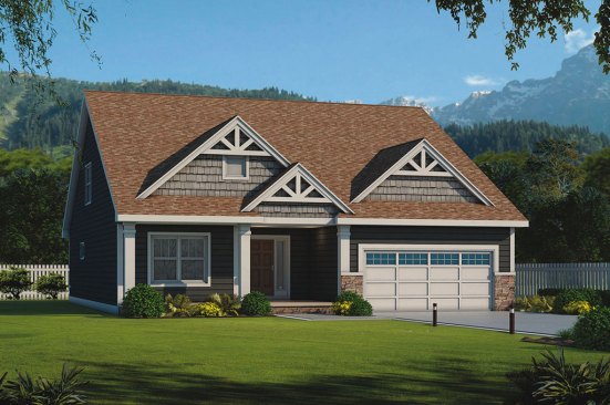 This 1,631-square-foot home would look great in a scenic location, where the shingle and stone accents can reference the landscape. Inside, the open layout makes the most of every square foot. The master suite shows off a large shower, a spacious walk-in closet, and windows looking out to the backyard. See more images, information, and the floor plans.