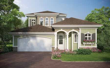 This home, part of the Designed to Earn the ENERGY STAR program, presents a layout that can be used by a multigenerational family. The gourmet kitchen is the center of the house, not far from the family room with its three-sided fireplace. The master suite offers a spacious retreat with a sitting area, large walk-in closet, and deluxe bath. Three bedrooms rest upstairs, one with a private bath and balcony. Need more room? The loft over the garage is ideal for a home office, recreation room, or in-law suite. See more images, information, and the floor plans.
