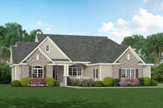 With an adjacent full bathroom, the study can easily serve as a guest suite in this one-story home. Walk-in closets add storage space to the other three bedrooms, especially the master suite (where owners will also enjoy the five-piece bathroom and a decorative tray ceiling in the bedroom). Instead of a traditional breakfast nook and separate (and in many cases, rarely used) dining room, you’ll find a large all-in-one eating area next to the kitchen. For extra storage or future expansion, the bonus room sits upstairs. See more images, information, and the floor plans.
