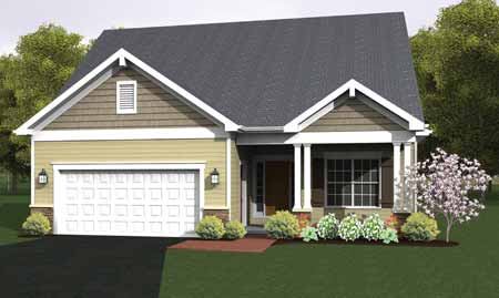 This remarkable plan does quite a lot with 1,508 square feet. Through the foyer, the view leads straight back to the great room’s windows and fireplace. The kitchen’s snack bar and adjacent dining area work together for highly functional seating. New parents will appreciate the placement of the secondary bedroom close to the master suite but farther from the noise of the great room. Don’t miss the walk-in pantry or third garage bay. For more images, information, and the floor plan, click here.