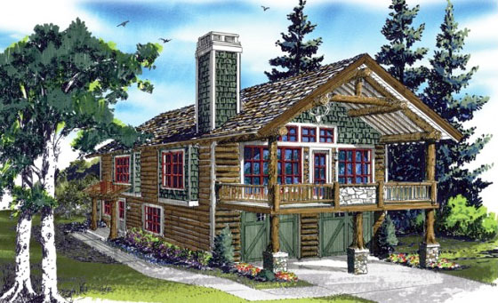 With two bedrooms and two bathrooms upstairs, this garage plan nicely houses a small family (perhaps a grown child with a child of her own) or gives lots of room to visitors. The large living space includes room for a table, a cozy fireplace, and plenty of windows. Each bedroom features a walk-in closet and easy access to its own bathroom. See more images, information, and the floor plans.