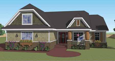 Full of cottage style, this charming plan will draw lots of attention in the neighborhood with its clipped gables, columned porch, and shingle siding. Inside, a versatile and roomy layout puts the great room—made cozy with a fireplace—in the center, open to the kitchen and its unique triangular island on the left and the screened porch to the back. Bedrooms are grouped on the right, with the master suite enjoying a luxurious bath, two walk-in closets, and a vaulted ceiling. For more images, information, and the floor plan, click here.