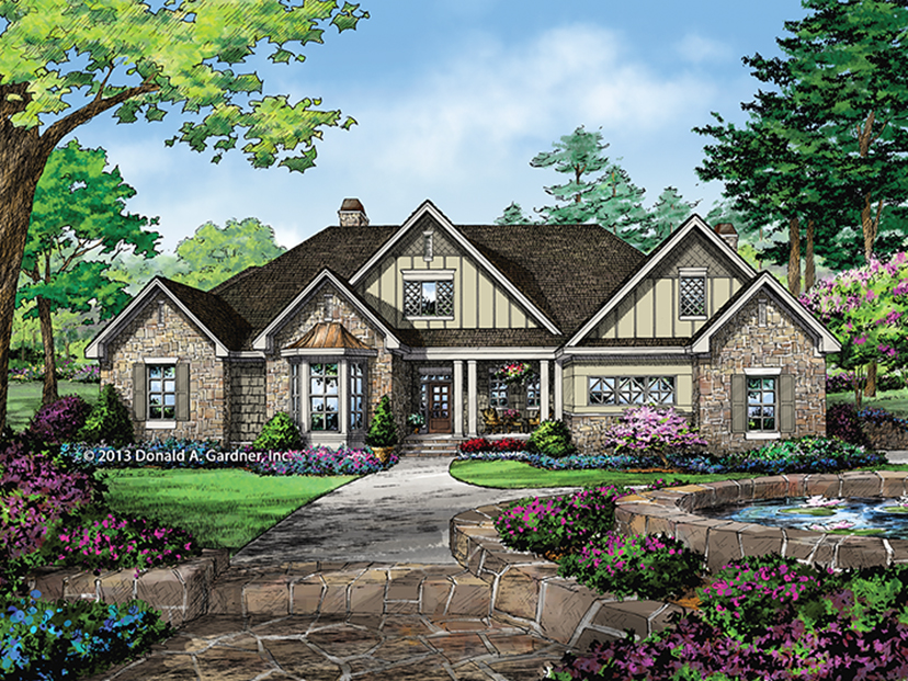 Large windows into the rear of this plan flood the house with an abundance of natural light. The open plan makes it easy to move around the gathering areas, from the fireplace-warmed great room to the island kitchen and the relaxed dining area. Here’s a remarkable feature: the walk-in pantry features an additional inside door that opens directly to the garage, making it incredibly easy to unload groceries from the car. Each bedroom offers a walk-in closet, including the luxurious master suite which also boasts a relaxing master bath. The finished basement holds two additional bedrooms, a hall bath, a spacious family room, and even a fun “man cave.” See more images, information, and floor plans.
