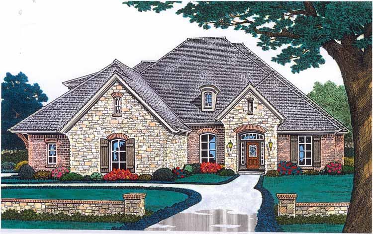 This gorgeous European home displays a splendid stone and brick exterior and a floor plan made for entertaining. Through the dramatic arched entry, the formal dining area waits on the left; head straight into the great room at the heart of the home. Nearby, the large island kitchen serves up casual meals at the snack bar and the breakfast nook. Linen storage is a practical touch in the master foyer. In the suite, a huge bedroom, windowed sitting area, whirlpool tub, and capacious closet surround buyers with luxury. Upstairs, an extra bedroom suite and game room make a great teen lair, in-law haven, or guest retreat. See more images, information, and the floor plans.
