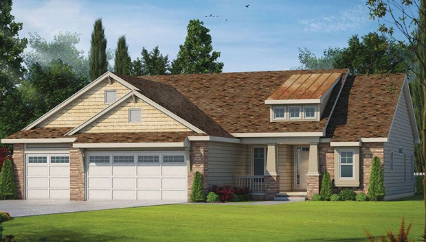 What’s better than a fabulous master suite? Two of them! These super-spacious suites each feature a generous bedroom, bathroom, and (big) walk-in closet. And because both are on the main level, they are easy to access. This is an ideal arrangement for anyone with a live-in relative (especially an elderly parent), frequent guests, or even a roommate. The wide-open layout of the public spaces creates terrific flow between the island kitchen, the fireplace-warmed family room, and the open dining area. A third garage bay adds extra parking and storage. See more images, information, and the floor plans.