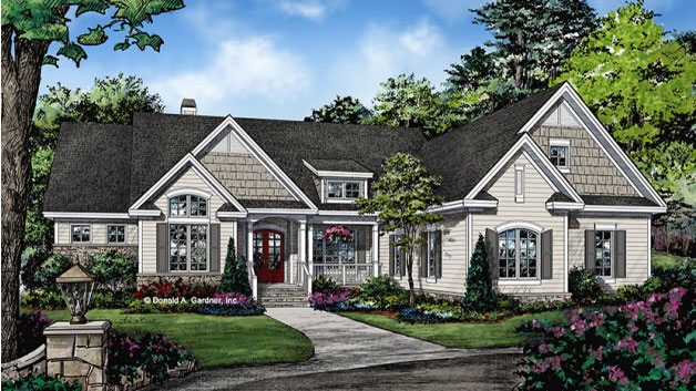 Late summer evenings call out for porch time, and this home delivers lots of space for outdoor living. Owners can host fun casual meals at the kitchen’s snack bar, which fits five people, or take the party over to the elegant dining room. The great room and the breakfast area both open to the back porch. Other thoughtful features include the side-loading garage, which doesn’t detract from the home’s charming curb appeal, and the flexible bonus room that can be finished upstairs. See more images, information, and the floor plan.