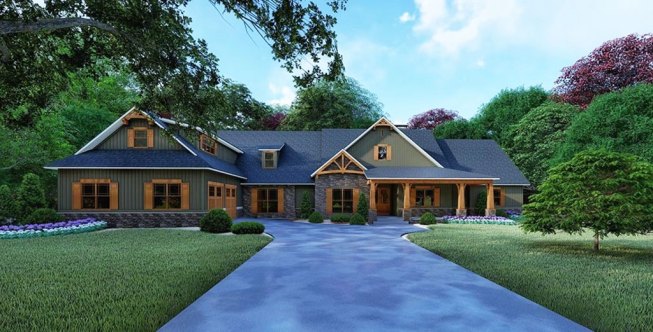Craftsman style shows its luxurious side with this new house plan. Highlights include the guest suite (complete with an attached bathroom for the comfort of visitors), the master suite’s huge shower, and a fun exercise room that even holds a steam room. See more images, information, and the floor plans.