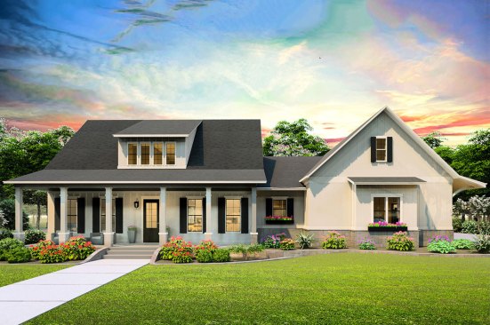 This 2,252-square-foot home feels totally contemporary inside, with an open layout that flows from the great room to the relaxed dining area and into the kitchen. Then, step out from the kitchen to linger on the big back porch, where an outdoor kitchen makes summer parties a breeze. The master suite shows off a window seat, walk-in closet, and five-piece bathroom. Upstairs, several large bonus areas invite future expansion. See more images, information, and the floor plans.