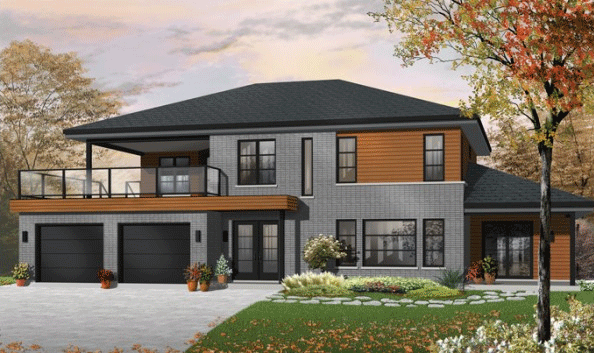 From the master suite’s luxurious bathroom to the convenient elevator that makes it easier to age in place, this home is full of modern amenities. Ideal for a hillside lot, the layout (mirrored on each side) begins with the lower level’s parking and storage space, plus a media room and shop. On the main floor, the open kitchen displays a six-burner range, an island with a snack bar, and access to the back porch. The top level holds three bedrooms in each unit, including the ultra-spacious master suite with its walk-in closet and private porch. See more images, information, and the floor plans.