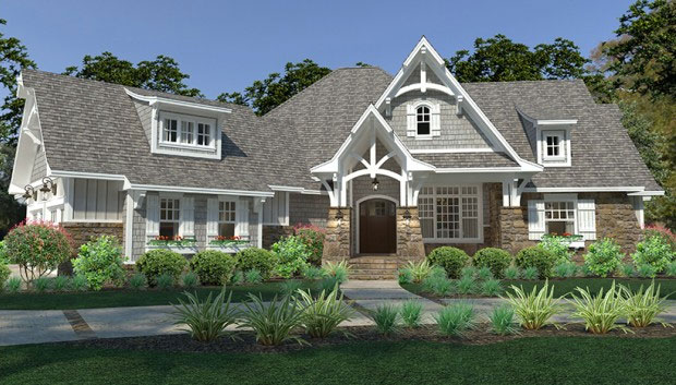 This contemporary design draws in natural light with a variety of clerestory windows (even in the master shower!) and sliding doors. The great room’s super-open layout makes it easy to move from the living space to the dining area and into the island kitchen. Set across the home from the secondary bedrooms, the master suite offers a luxurious bathroom, a walk-in closet, and an adjacent study that could easily serve as a nursery or snore room. Kids will love the game room, which would also make a great home gym with views of the backyard. See more images, information, and the floor plans.