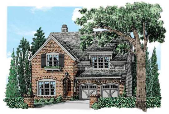 Cost efficiency and curb appeal are in abundance in this stone- and shingle-embellished country cottage. At less than 2,400 square feet, this clever design affords four bedrooms within a narrow 40’ footprint, suiting it well for an infill lot. The rear deck makes alfresco dining an option. All four bedrooms are housed on the second level, allowing the home to be heated and cooled in zones for better energy efficiency. The second-floor laundry adds convenience. Three of the bedrooms have walk-in closets, and the master suite has two! See more images, information, and the floor plan.