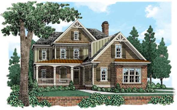 warm blend of country and Craftsman styles draws all eyes to the exterior of