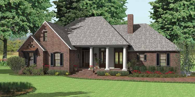 Stately columns distinguish this beautiful home’s cozy front porch. Inside, a fireplace warms the family room, which also includes two sets of French doors leading to the front porch. Nearby, a small office is a great place to charge gadgets, especially with a window letting in light. Buyers will enjoy casual meals at the kitchen’s island snack bar. Dual sinks, a garden tub, and a separate shower grace the bathroom in the master suite. Two additional bedrooms each display a walk-in closet. See more images, information, and the floor plans.