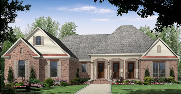 This attractive, European-influenced home includes many unique details to meet the needs of a modern family. Brick arches frame the spacious kitchen and dining area, defining the spaces without closing them off from the great room. A large island with a prep sink adds extra utility to the kitchen. Bedrooms 2 and 3 each include a computer desk and access to a unique Jack and Jill bath. Don’t miss the lockers in the flex space. The master bedroom offers all kinds of amenities: a vaulted ceiling, dual closets and sinks, a corner jet tub, a separate shower, and even an extra vanity. See more images, information, and the floor plan.
