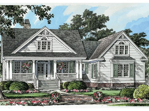This traditional charmer welcomes with its country porch and prominent gables with decorative brackets. A cathedral ceiling spans the open great and dining rooms, with bar seating facing the roomy kitchen. A mudroom off the garage includes a pantry, closets, a seat for taking off shoes The master suite features two walk-in closets and linen storage, plus a spacious bathroom with two sinks. Don’t miss the roomy screen porch, which receives sunshine through skylights. See more images, information, and the floor plans.