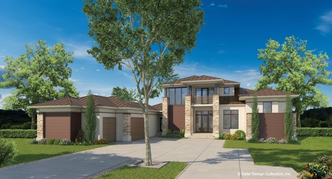 No need to overdo it. Today’s new luxury house plans tend to showcase open, uncluttered spaces that create relaxing ambiance. Think big showers, simple freestanding tubs, all-in-one islands, and clear sightlines throughout. These move-up homes from the Sater Design Collection show how it’s done.