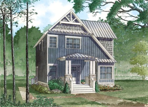 Just 26 feet wide, this on-trend design fits a slim lot with no problem. 1,706 square feet and four bedrooms are budget-friendly and ready for a growing family. Inside, an impressive island with seven seats makes the kitchen the undisputed hangout zone, with total openness to the great room and the dining area. Sliding doors lead out to the back deck. The master suite is easy to reach on the main floor. See more images, information, and the floor plans.