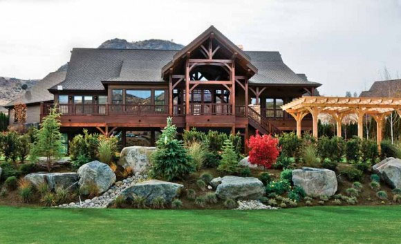 This home shows off walls of windows, multiple fireplaces, and two levels of outdoor living spaces. At the center of the plan, the dramatic great room opens to the roomy kitchen, which offers plenty of seating and counter space. The first-floor master suite includes a luxurious bathroom with dual vanities and a seated beauty station. A full guest suite comfortably accommodates visitors. On the lower level, three family bedrooms enjoy a media room and their own kitchen, along with a family room and game room for thoroughly entertaining evenings. See more images, information, and the floor plans.