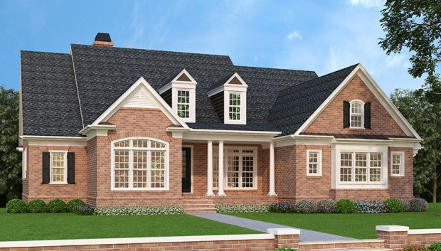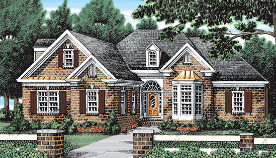 This modestly sized layout delivers serious style to a neighborhood with its bay window and multiple gables. Inside, the split-bedroom layout gives lots of privacy to the master suite, where a tray ceiling draws eyes up and the huge walk-in closet offers practical luxury. In the gathering areas, a snack bar overlooks the great room and adds prep space to the kitchen. Two more bedrooms and an optional bonus room create space for family, friends, and later expansion. See more images, information, and the floor plan.