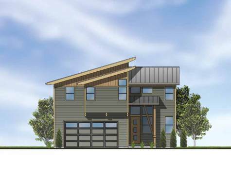 This sleek, dramatic design fits a compact lot. Inside, the entrance shows off soaring windows while the great room’s two-sided fireplace (the other side warms the patio) emphasizes the indoor/outdoor connection. A snack bar and walk-in pantry enhance the open kitchen. Upstairs, a huge closet gives room for an extensive wardrobe in the master suite, and the large shower is a modern touch. Two more bedrooms share a full bath and close proximity to the laundry room. See more images, information, and the floor plans.