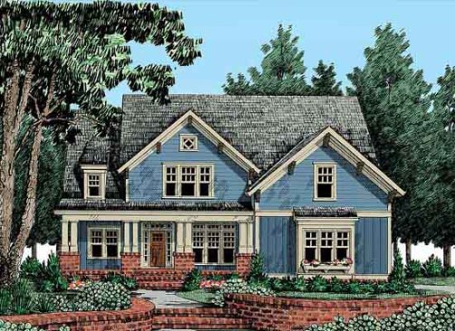 This fairly compact Craftsman bungalow contains a surprising amount of space, including an open casual zone that combines the keeping room, breakfast nook, and large island kitchen. The family room’s lofty height shows off a grand fireplace flanked by transom-topped windows. The elegant master suite is located on the first floor for convenience and privacy. Upstairs, two bedrooms share a Jack and Jill bath and a third enjoys a private bath. The bonus room would make a great study retreat for kids. See more images, information, and the floor plan.