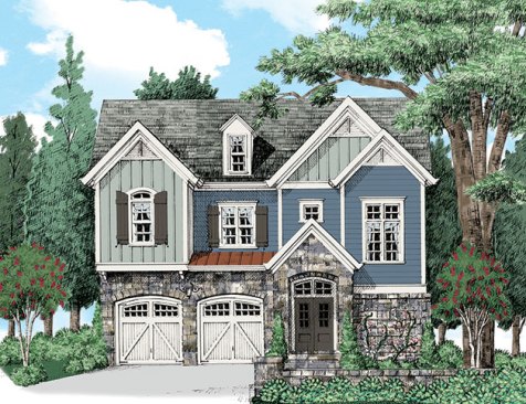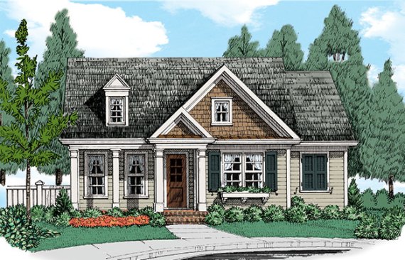 With the kitchen at the center of activity, this efficient layout devotes space to the areas that matter most. The master suite also takes a contemporary turn with its location on the main level. A mudroom greets homeowners with well-placed storage as they walk in from the garage. Upstairs, two more bedrooms share a hall bath that boasts dual sinks. An optional bonus room invites later expansion. See more images, information, and the floor plan.
