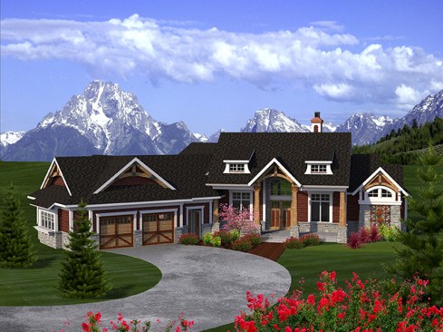 An angled garage, along with Craftsman detailing, gives this charming ranch high-impact curb appeal. A vaulted entry leads you to the great room, where a dramatic beamed ceiling draws the eye up. Nearby, the island kitchen and open dining room provide plenty of space for relaxed meals. The master suite, with its spacious walk-in closet and large shower, is located to the right of the entry, while the second bedroom sits far to the left. Off the dining room, the screened porch and deck take full advantage of rear views. Don’t miss the handy lockers on the way in from the garage. See more images, information, and floor plans.