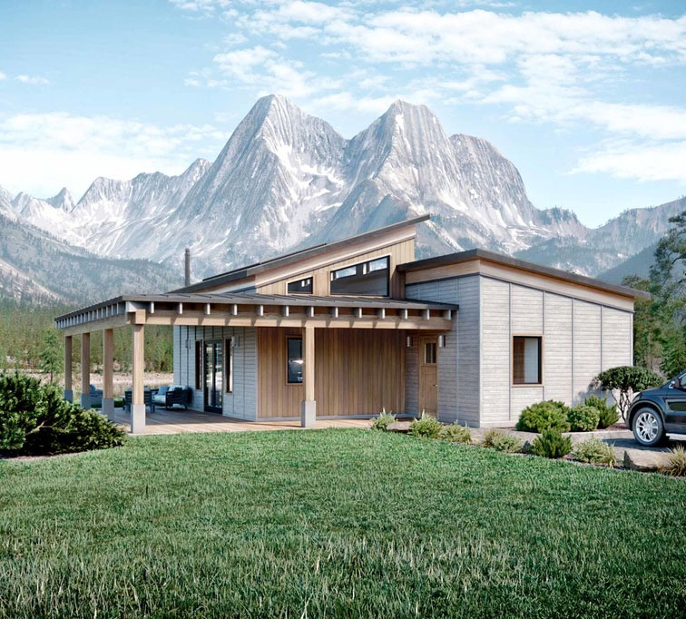 As a standout small residence or secondary home, this 1,200-square-foot design makes its mark. A wraparound porch creates impressive outdoor connections, with French doors stepping out from the great room. The kitchen flows into the living area. Impressive for a home this size, the master suite features a private bathroom and access to a sundeck. A pocket office adds versatility for working from home, while visitors can stay in the secondary bedroom. See more images, information, and the floor plans.