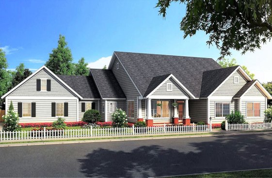 This 2,187-square-foot design captures your attention with sleek vertical siding and warm Craftsman-like details. Inside, the remarkably versatile layout puts most living spaces on the main floor, plus an optional fourth bedroom and bonus space upstairs that can be used as a private living zone by visitors or perhaps a young adult. The vaulted family room flows into the island kitchen and out to the impressive back porches. In the master suite, owners will find relaxation in their private oasis-like bathroom. See more images, information, and the floor plans.
