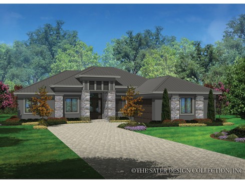 stone columns and hipped metal roofline, this plan has much to offer with three