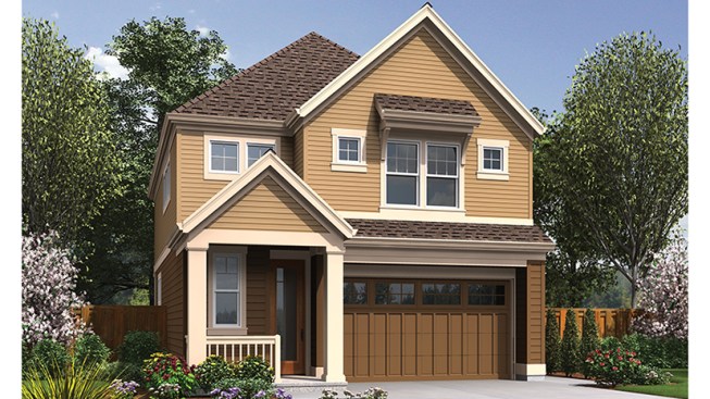 With its trim 28-foot width, this appealing home will fit just about anywhere. A super-open layout makes it easy to move throughout the common areas, including the island kitchen and informal dining room. Outdoor living is brought into the home with the partial inclusion of the patio in the footprint of the home. Upstairs, all three bedrooms enjoy convenient proximity to the laundry room and a desk area that can be used for working from home or homework. The master suite invites relaxation in the deluxe tub and separate shower (two sinks add another upscale touch). See more images, information, and the floor plan.
