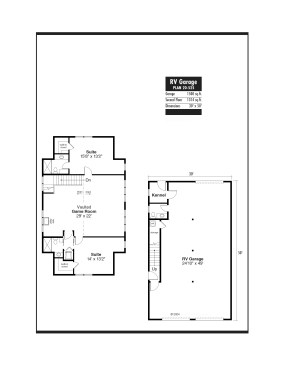 Here’s one. The first level accommodates a recreational vehicle (RV), with enough space left for tools. There’s even a kennel in the corner, next to a convenient powder bath. Upstairs, you’ll find two generous bedroom suites separated by a living space.
