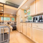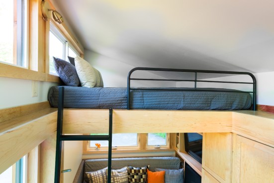 Measuring 28 feet long, 8 1/2 feet wide and 13 1/2 feet high, the Traveler can hold more people than your average tiny house—up to six adults via an upper sleeping loft with queen bed, second sleeping loft (or attic), plus a first-floor couch that folds into a daybed.