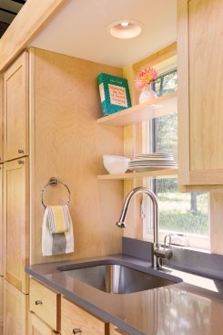 “Our units have a completely different feel from other tiny homes because we do everything at scale—we don’t make things microscopic,” Dobrowolski says. “But at the same time we don’t have a ton of room, so we’re using a lot of strategies with the architecture and design to make it feel open and airy.”