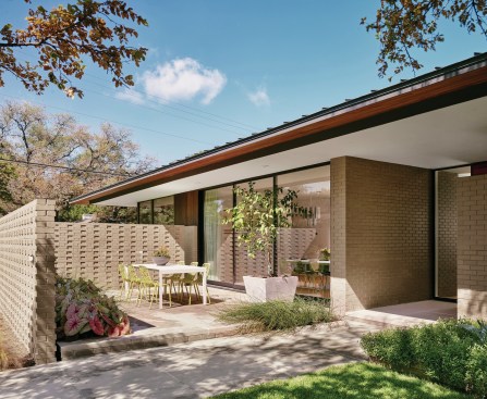 When the devil is in the details, it’s important to get them right. Though its bones are that of a contemporary ranch-style house, the Laurelwood Residence, designed by Austin, Texas, firm Alterstudio as a spec home, incorporates the geometry, consistency, and detail that lend it a distinctly midcentury modern sensibility.