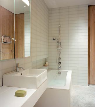 Clever built-ins and features such as a hidden hamper help the space live large.