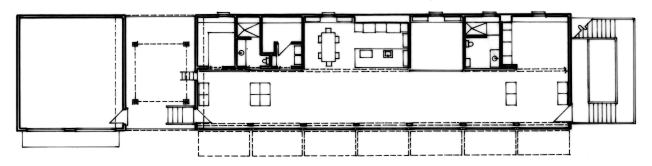 The architects continued the home's textured ceiling outside to form an exterior soffit.