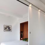 A large sliding door allows the owner to separate the sleeping area from the main living space.