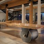 The movable table, inspired by the work of George Nakashima, was center-cut from an old-growth tree that died naturally and retains the tree’s contours.