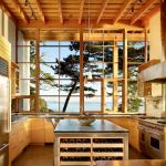 Floor-to-ceiling wood windows maximize water views from the living room.