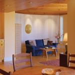 At the heart of the project was “a classic decision about where to put the front door,” Simons explains. Making a strong case for its new location, the glazed door and sidelights offer an inviting view through the building to a stone-walled patio at the east side. Located at the barn end of the ell, the entry hall also serves as the hinge point of the house, efficiently channeling both internal traffic and communication with the outside world. A mudroom at the rear of the garage keeps the entry uncluttered, while an adjacent stair leads to the barn’s second-floor studio. Simons points out a built-in mail/recycling center, which keeps newspapers handy to the dining table and short-circuits the stream of junk mail. “Those are the kinds of things we talk about,” he explains. “The organization of the house and how things move through the house.”