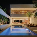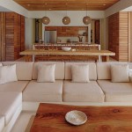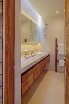 Outfitted with water-resistant, durable materials like stucco, local tile, stone, and rot-resistant rainforest hardwoods, the house can withstand nearly anything Mother Nature throws at it. In fact, after a big storm, the 4,800-square-foot vacation house simply needs to be hosed down and swept out; even the living room furniture is concrete, with quick-drying cushions made out of marine-grade fabric.