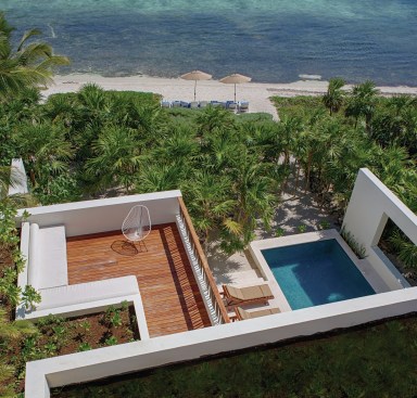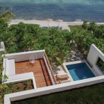 Casa Xixim—named for the Mayan word for zero—was designed to be fully self-sufficient. The house is largely powered by the sun and irrigated via captured rainwater. Although it’s tied to the grid, a large canopy over the rooftop terrace holds enough solar panels to power nearly all of the home’s needs. The terrace also collects rainwater that is filtered and stored for use in underground tanks. It is pumped to the roof during peak sunlight hours where it’s held for showers via a gravity-assisted system.