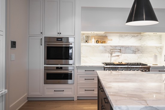 Inside the 6,524-square-foot house, a main goal was to open up the floor plan. While the dining room, living room, and solarium all stayed in their original locations, many of the home’s cased openings were widened to accommodate a more modern floor plan.