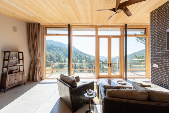 “We carefully sited the home to be able to gain as much of the winter sun inside the home while maintaining views down the valley,” says Cayko. “At the same time, the large roof overhangs are positioned such that during the summer they block the unwanted sunrays from entering the home in order to keep it cool.”