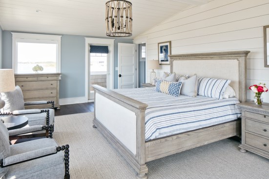 The additional suites each have their own “at-the-beach” feel with fun pops of color, wood accent walls, hanging ropes, and coastal lighting fixtures.