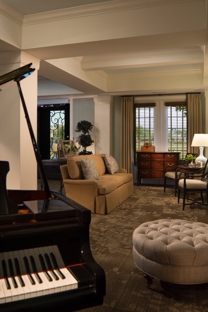 —A grand piano in the main space provides opportunities for spontaneous musical gatherings and scheduled performances.