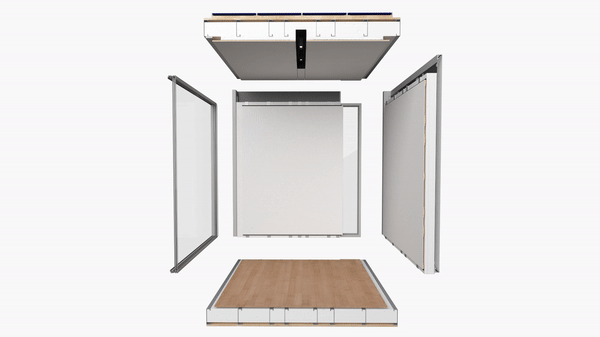 The units also use a different heating and cooling system compared to traditional methods. An aluminum sandwich panel system in the ceiling circulates hot or cold air to heat or cool the space, eliminating the need for traditional air conditioning or heating methods.
