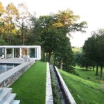 The New Canaan Retreat by New York, N.Y.-based prefabricated design and construction firm Cocoon9 is a flexible, multipurpose space in New Canaan, Conn., offering expansive views of a protected wetlands area. The retreat serves as an office, poolhouse, studio, and entertainment space, featuring sliding glass doors that open to the pool area and stone retaining walls that terrace down through the valley. The 480-square-foot modular structure was delivered with all interior finishes and fixtures in place, Cocoon9 says, and was set within a day.